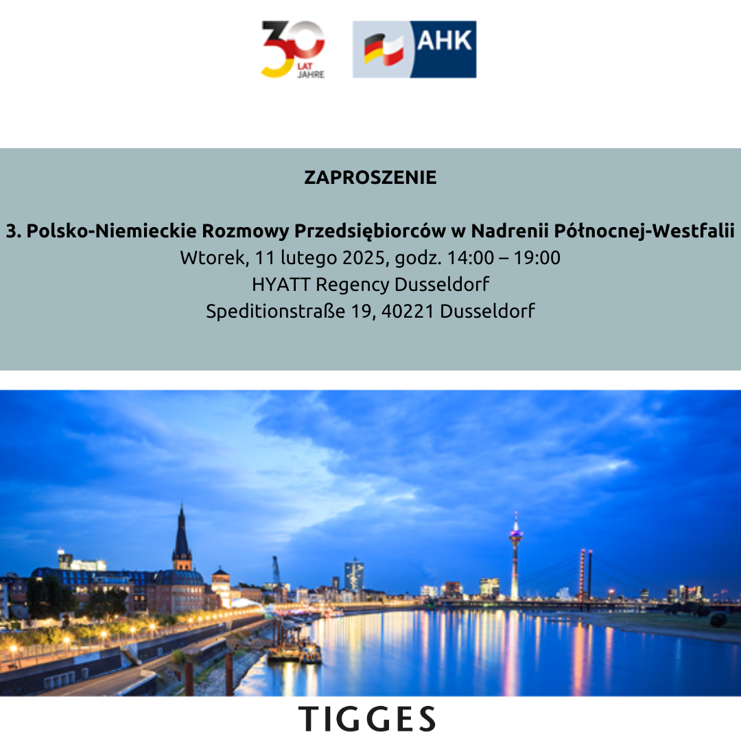 Polsko-Niemiecka Izba Przemysłowo-Handlowa (AHK Polska) we współpracy z Izbami Przemysłowo-Handlowymi Nadrenii Północnej-Westfalii (IHK NRW e.V.), NRW.GLOBAL BUSINESS, stolicą kraju związkowego Düsseldorf oraz Konsulatem Generalnym RP w Kolonii serdecznie zapraszają na III Polsko-Niemiecki Dialog Gospodarczy w Nadrenii Północnej-Westfalii.